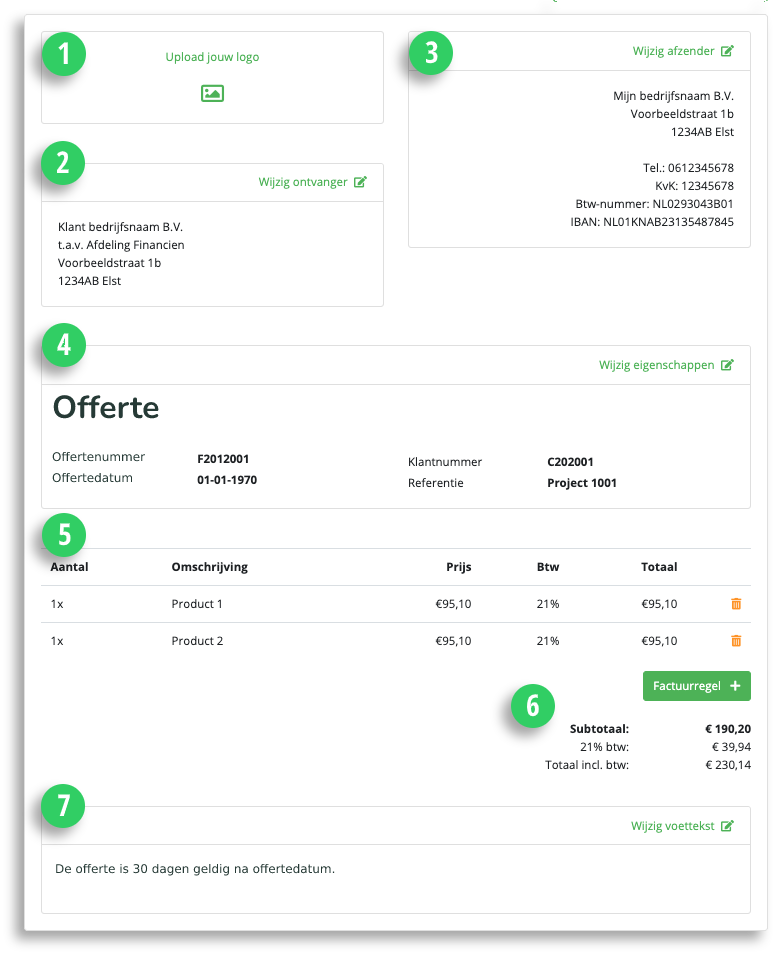 Een offerteregel laat aan de klant zien welke producten en/of diensten er geleverd zijn, hoeveel er hiervan zijn geleverd en tegen welke prijs.